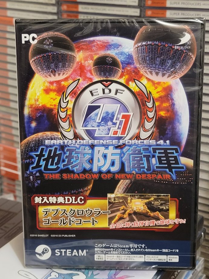 This item is a Steam key printed on a card and packaged inside a factory-sealed DVD-style case. This is the only "physical" release of Earth Defense Force 4.1 for the Windows PC and possibly a collectible. No physical media is included.